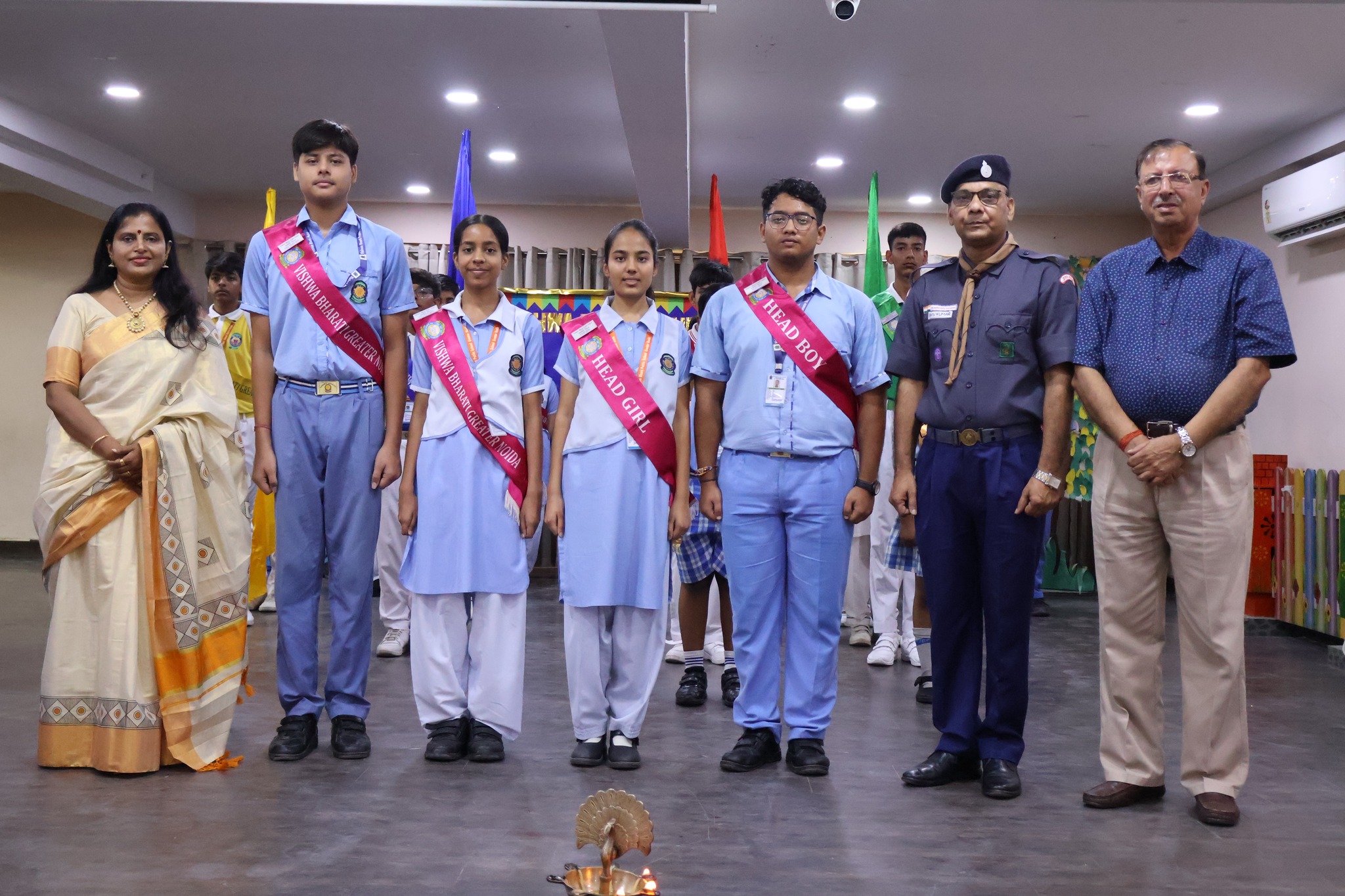 The Investiture Ceremony for the academic session 2025-26 was held with great pomp and dignity at Vishwa Bharti Public School, Greater Noida. The ceremony was graced by the presence of the Chief Guest, Mr. Shiv Kumar, District Organising Commissioner (Scout), Gautam Buddha Nagar, along with distinguished management dignitaries Dr. V.K. Ganju Sir and Shri Virender Saigal Sir.