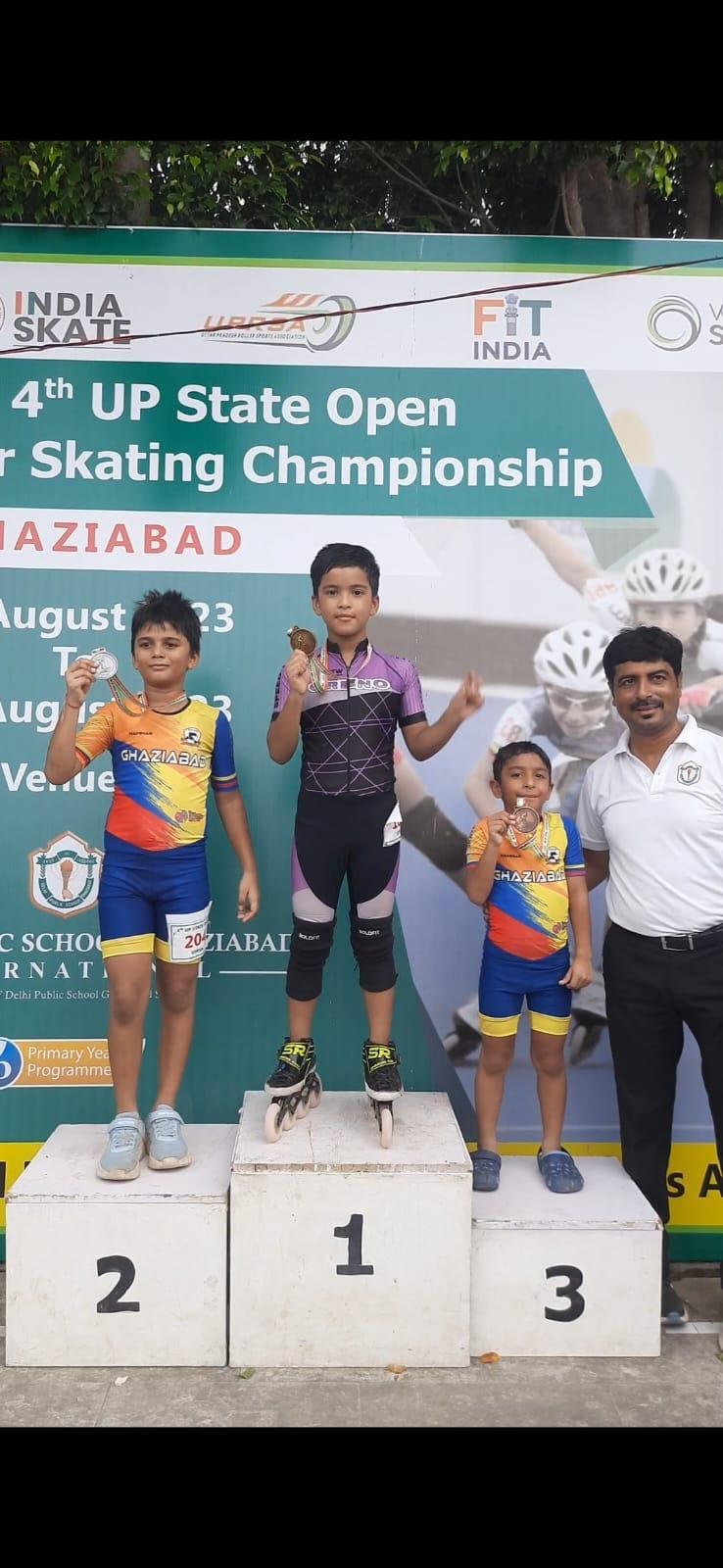 U P State open roller skating championships 2023 - Priyanshu Barman of class III secured Gold in 200 m rink race at Ghaziabad, Uttar Pradesh. ROLLER SKATING TOY INLINE UNDER 14 - AKSHIT KHARI of class VIII secured BRONZE medal at JSR SKATER PARK GHAZIABAD held on 31.07.23.